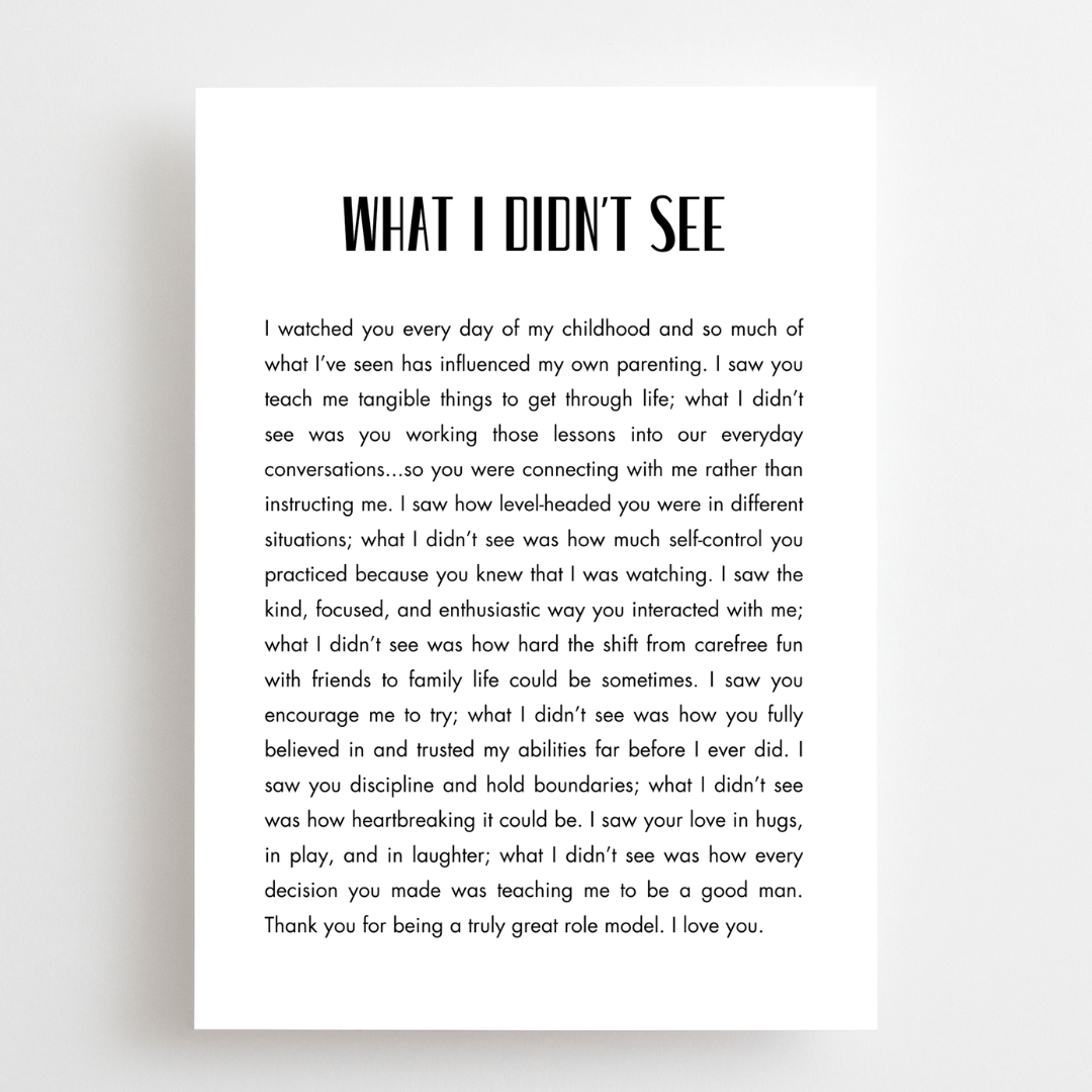 This is written for the father of a man who finally understands everything his dad did for him after having kids of his own. He's taught you everything you know about being a great man. Send some extra special love and let him know you appreciate him.
