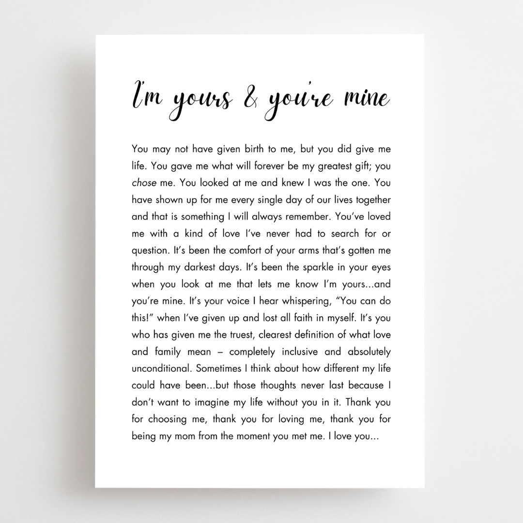 She chose you, and in that, has given you the love of a lifetime. Let your mom know how much that choice has meant to you.