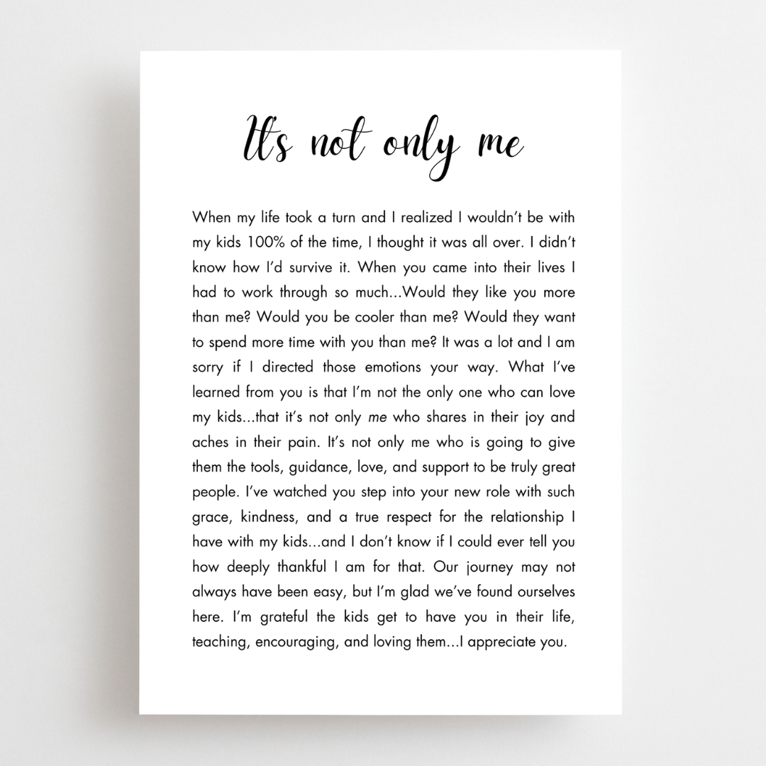Accepting someone new in your life is hard enough, but when they're in your kid's lives too...it can be really really hard. BUT it can also be really really beautiful. Let that bonus mom know you appreciate her in their lives.