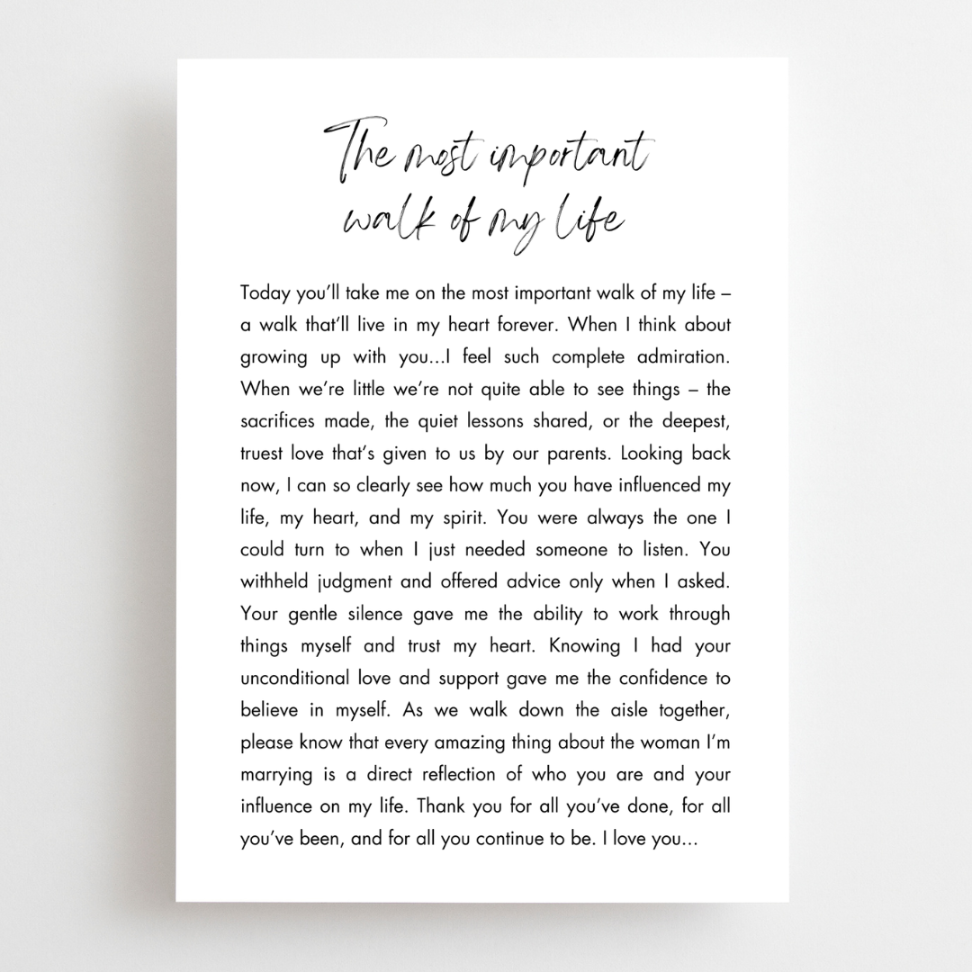 It's the most important walk of your life, and just like every other walk you've taken, he'll be right there by your side. Let the world's greatest dad know just how much he means to you before he walks you towards the world's greatest woman.