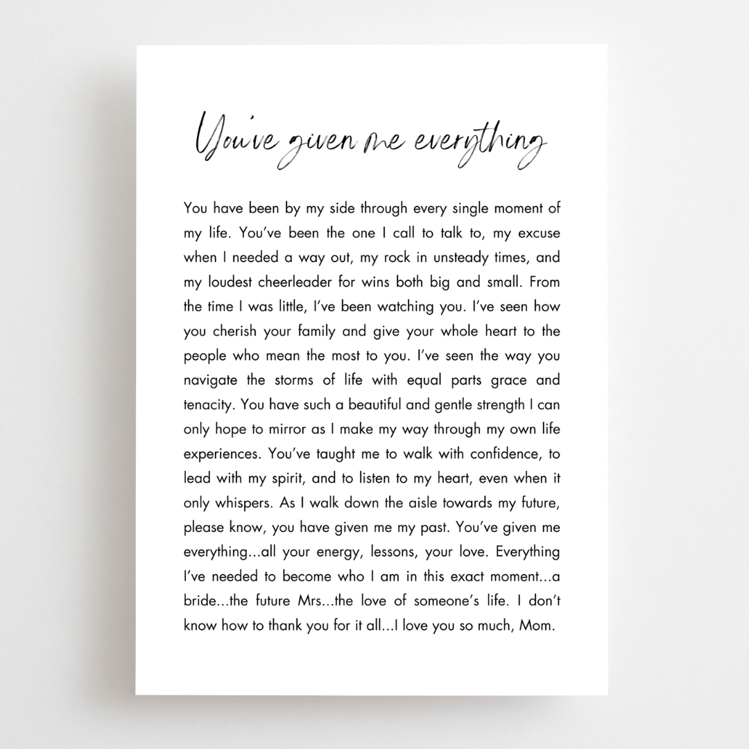 Your mom has been by your side through every moment in your life. Big or small, it's been her you've turned to. Now it's one of the biggest days of your life and you have the chance to tell her how much you value all the amazing things about her.