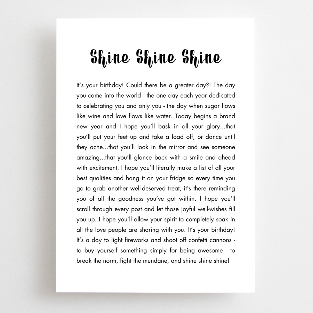 This one's all about reminding that special person how dang awesome they are and that their birthday is a day to shine, shine, shine!
