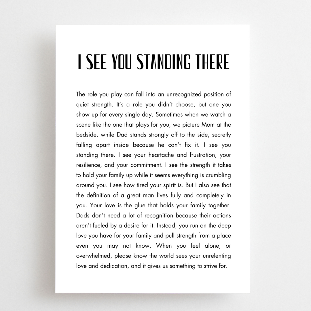 This is written for the dad of a sick or struggling kiddo. His role can sometimes fall into an unrecognized position of quiet strength. Let him know you see him standing there.