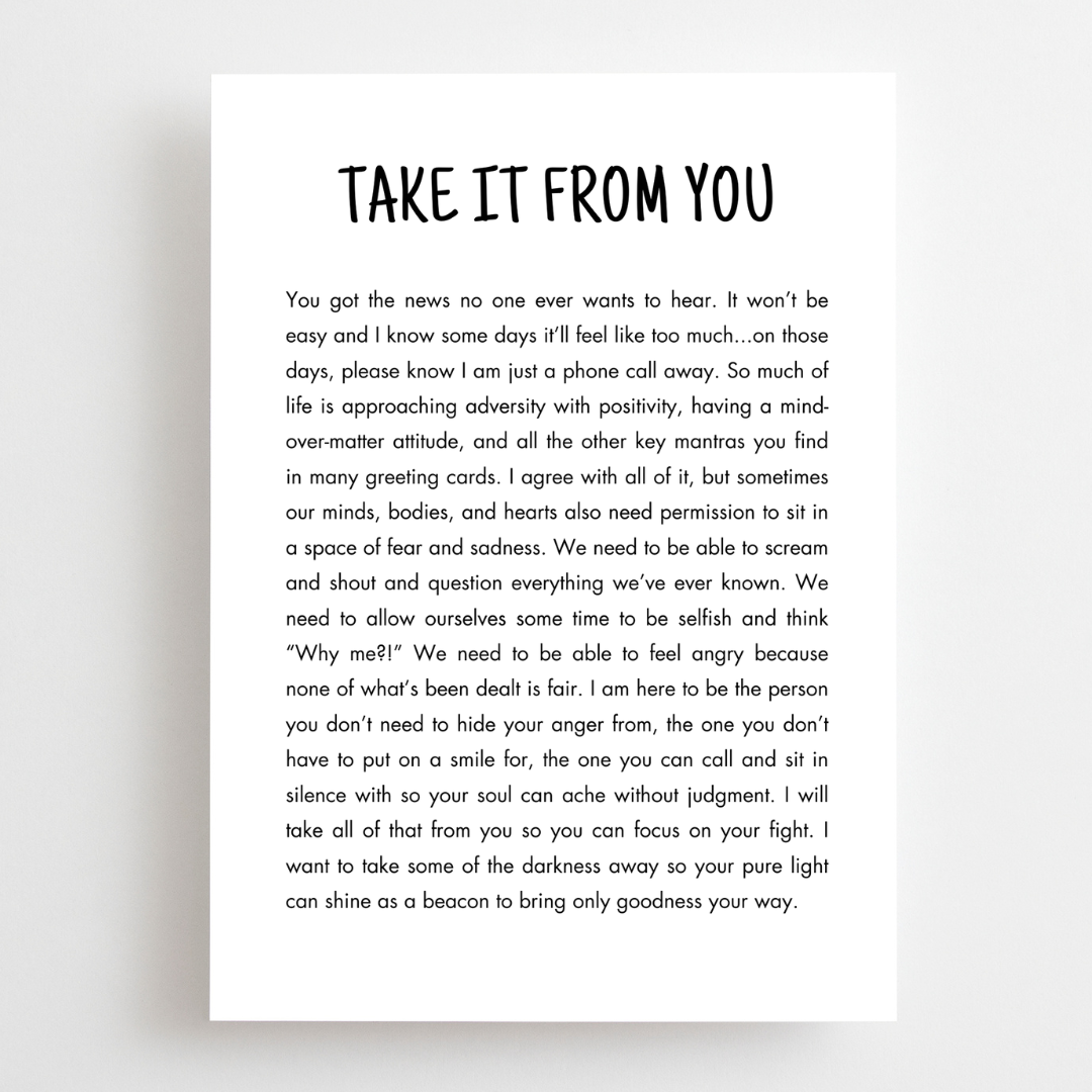 They've gotten news no one ever wants to receive. They have so much coming at them right now but sometimes our minds, bodies, and hearts also need permission to sit in a space of fear and sadness. Be the person who will allow them to do that.