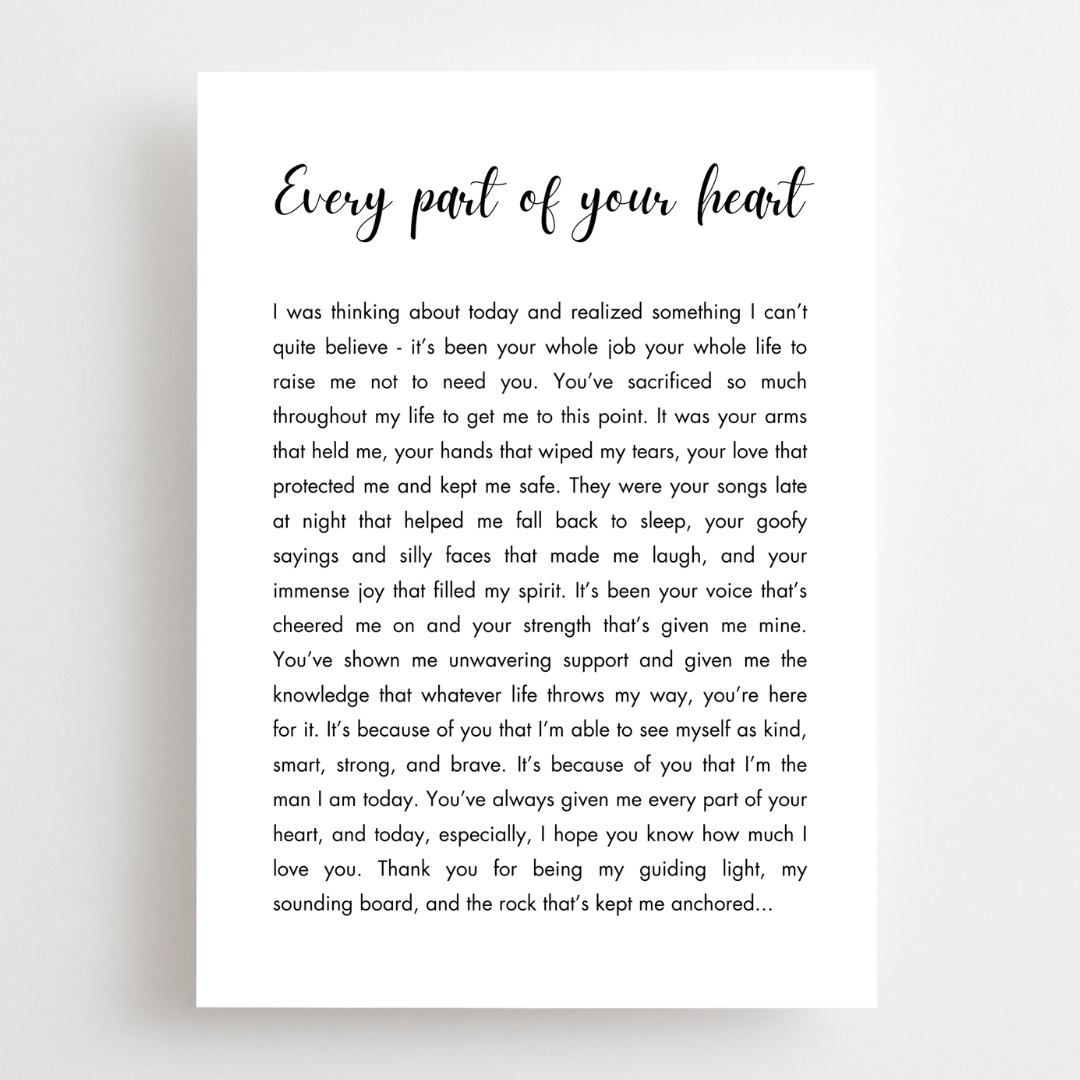 Your mom's been your constant and her presence in your life has made you the man you are. Let her know how much you love her.