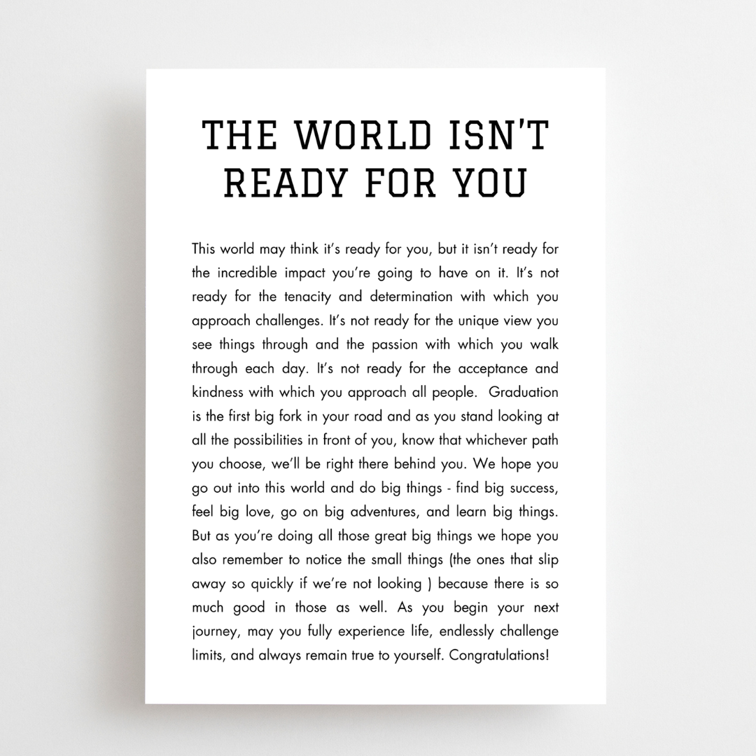 The world may think it's ready for this grad, but it isn't. It's not ready for all the incredible things they're going to bring to each new adventure they begin. Let them know you're there for wherever their path leads.