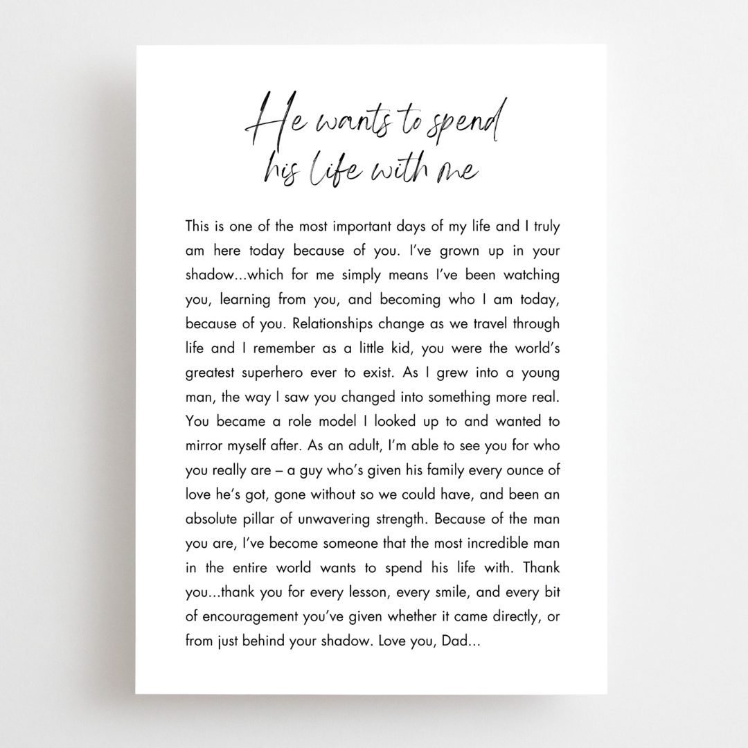 It's so much because of your dad that you've become the guy the most incredible man in the entire world wants to spend his life with. Let your dad know how thankful you are for his influence in your life.