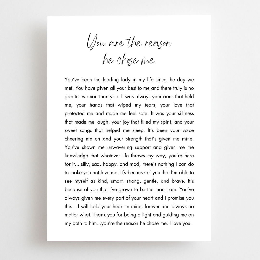 It was your mom's arms that held you, her hands that wiped your tears, her love that protected you and kept you safe. Let her know her heart is forever safe with you.