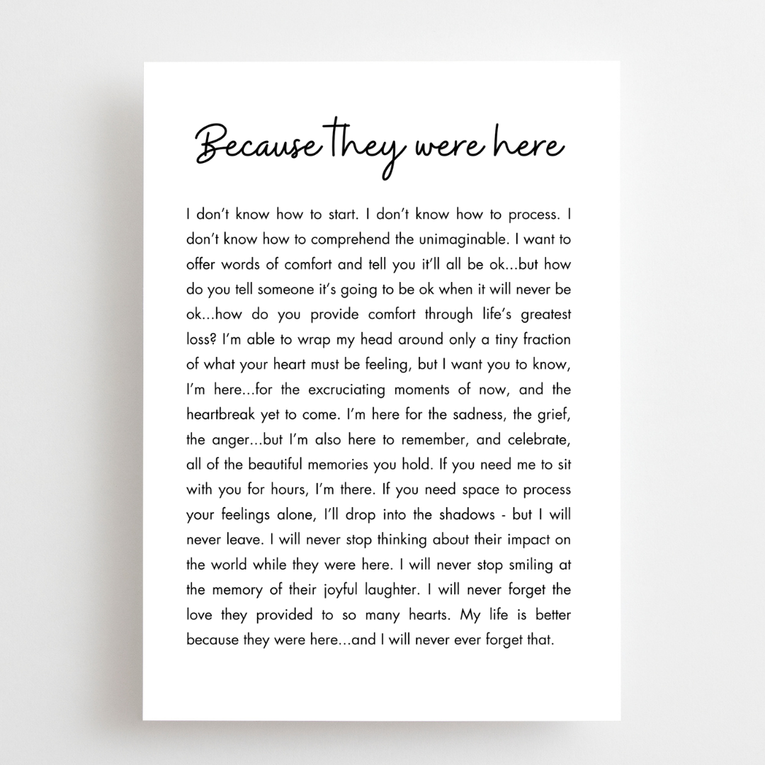 How do you provide comfort in the greatest loss...how do you tell someone it's going to be ok when it will never ever really be ok? You simply let them know you're here for them, and that you'll never forget the joy they brought to so many hearts.