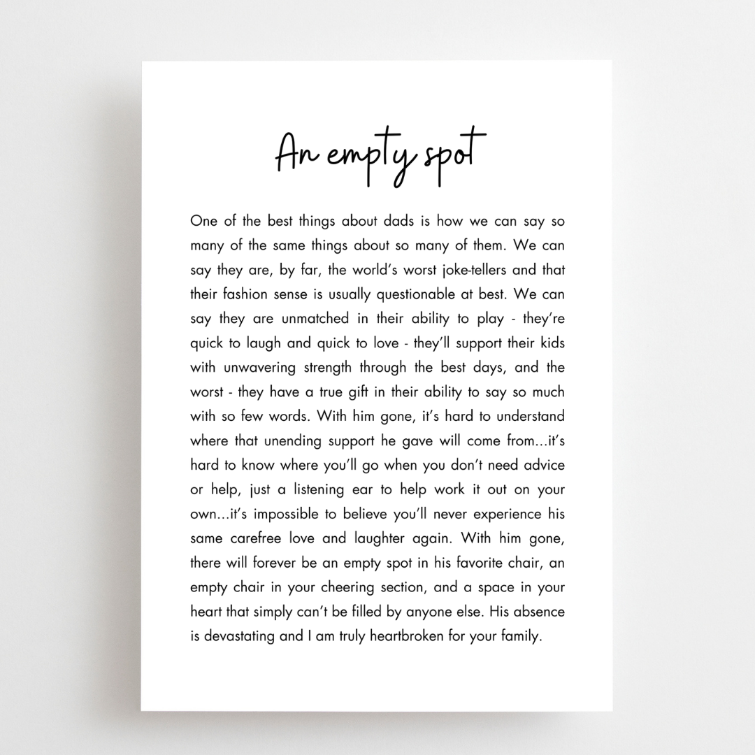 With him gone, it's hard to understand where that unending support he gave will come from. Let them know your heart is hurting for their family.