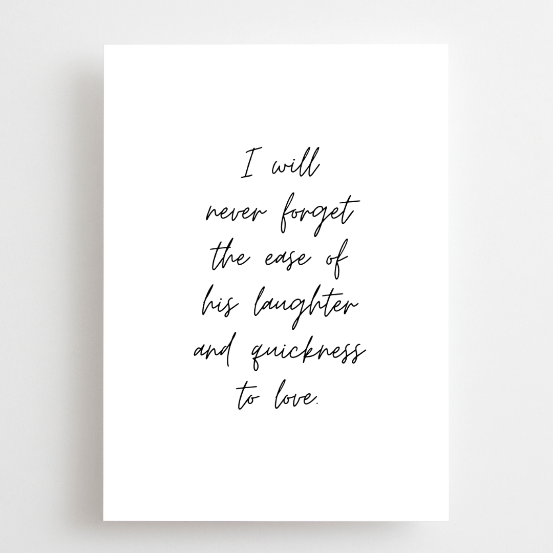 The ease of his laughter, his quickness to love...let them know your heart is hurting for their family.