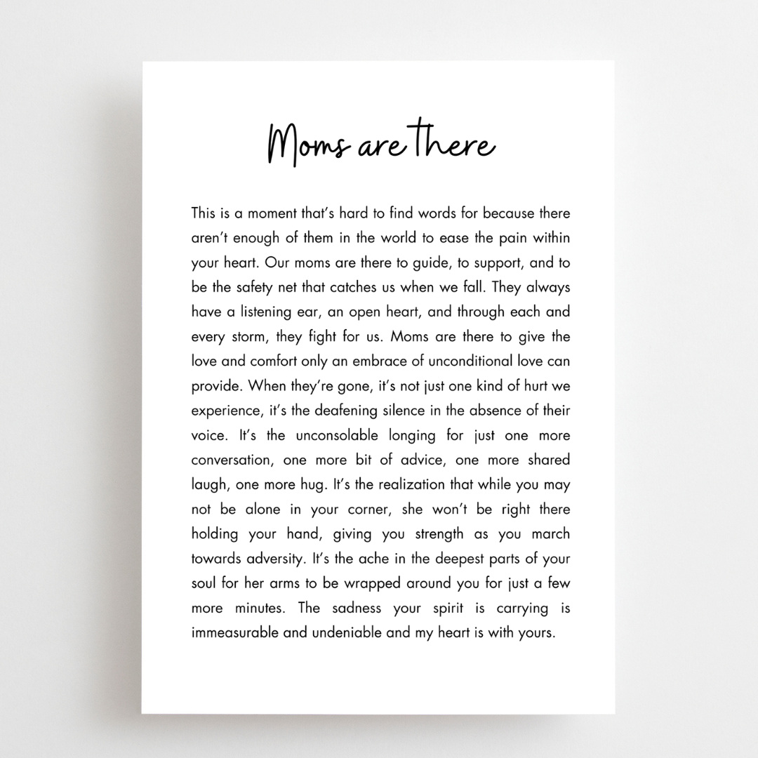 Our whole lives, moms are there to guide us, to support us, and to be the safety net that'll catch us. Let her loved ones know the sadness they're carrying is undeniable and your heart is with theirs.