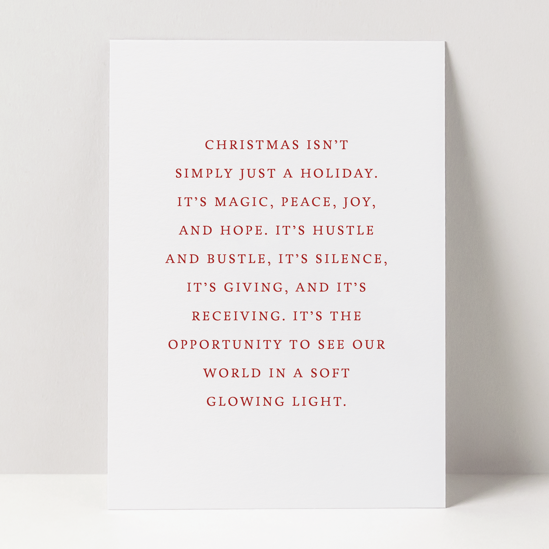 Christmas isn't simply just a holiday. It's magic, peace, joy, and hope. It's hustle and bustle, it's silence, it's giving, and it's receiving. It's the opportunity to see our world in a soft glowing light.