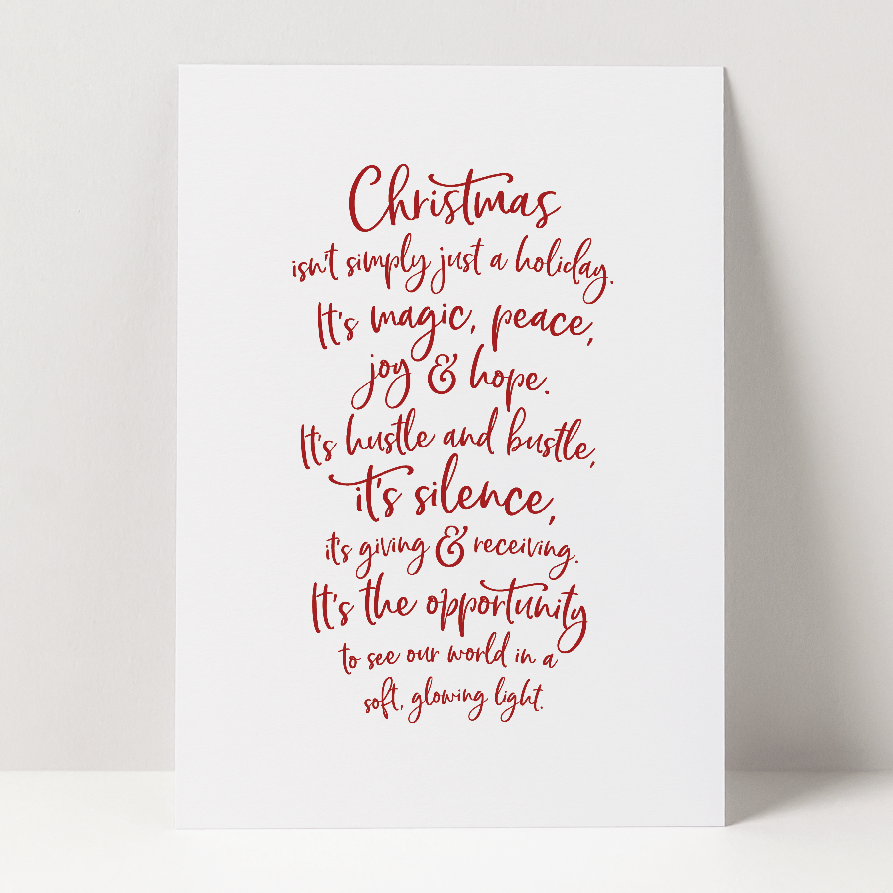 Christmas isn't simply just a holiday. It's magic, peace, joy, and hope. It's hustle and bustle, it's silence, it's giving, and it's receiving. It's the opportunity to see our world in a soft glowing light.
