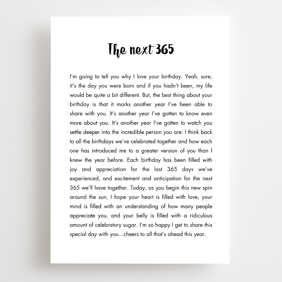 The love of your life came into the world on this day. Let them know how much you've loved being with them the past year and how excited you are for the next 365.