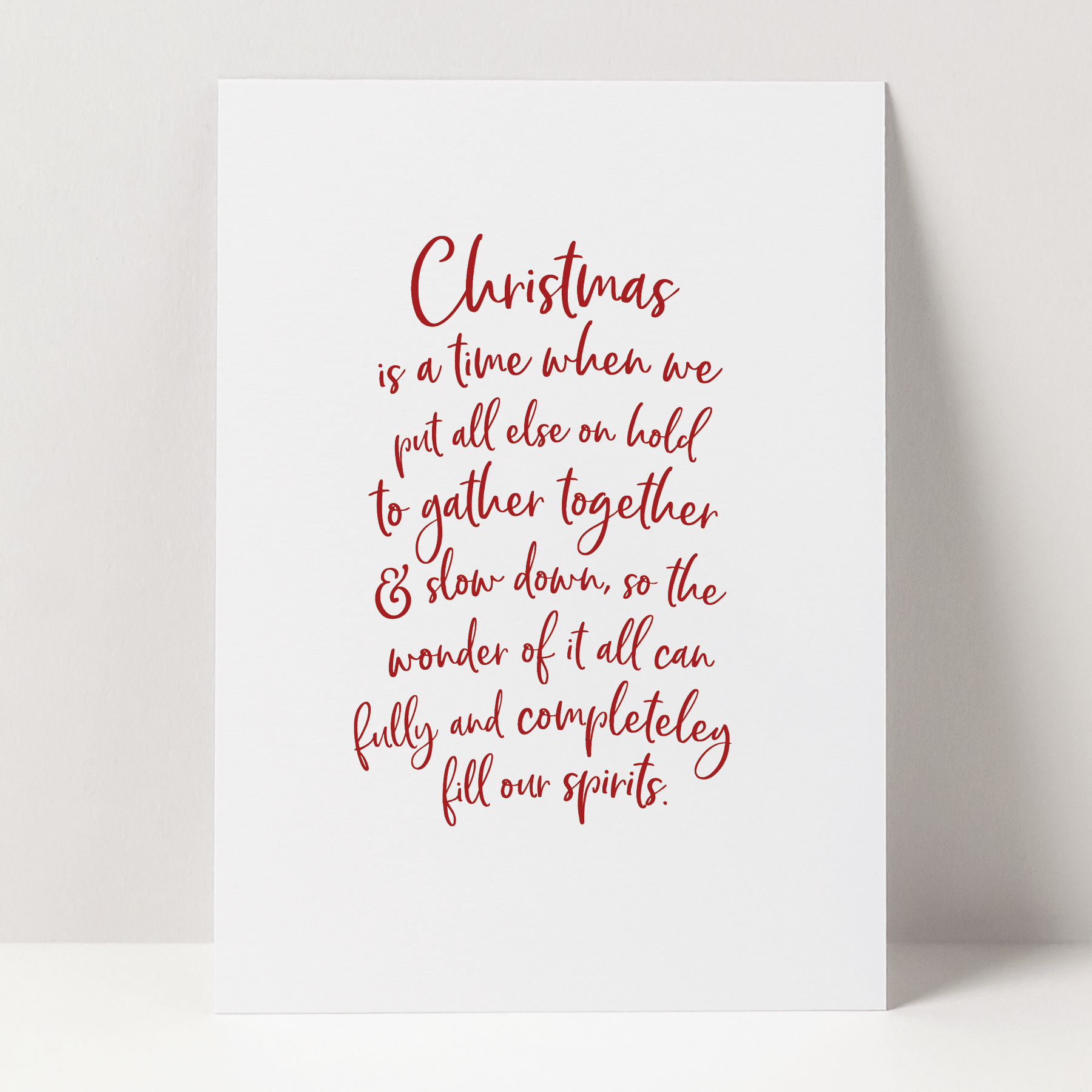 Christmas is a time when we put all else on hold to gather together, and slow down so the wonder of it all can fully and completely fill our spirits.